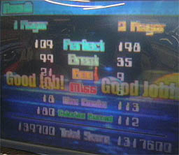 Váš taneční výkon je zhodnocen výpisem počtů Perfect, Great, Boo a Miss. Dozvíte se i vaše maximální kombo, které jste mohli udělat a kolik jste spálili za song kalorií. (když se ani nehnete tak vám to napočítá 27^_^. Zapomněla jsem na celkové skóre. Uprostřed obrazovky se také ukáže slovní ohodnocení. Zatím se nám podařilo získat: Excellent, Good Job, Not Bad a You need More Exercise (Failed). Po ukončení všech tří stage hra končí nápisem 'Congratulations. All stages cleared.'
